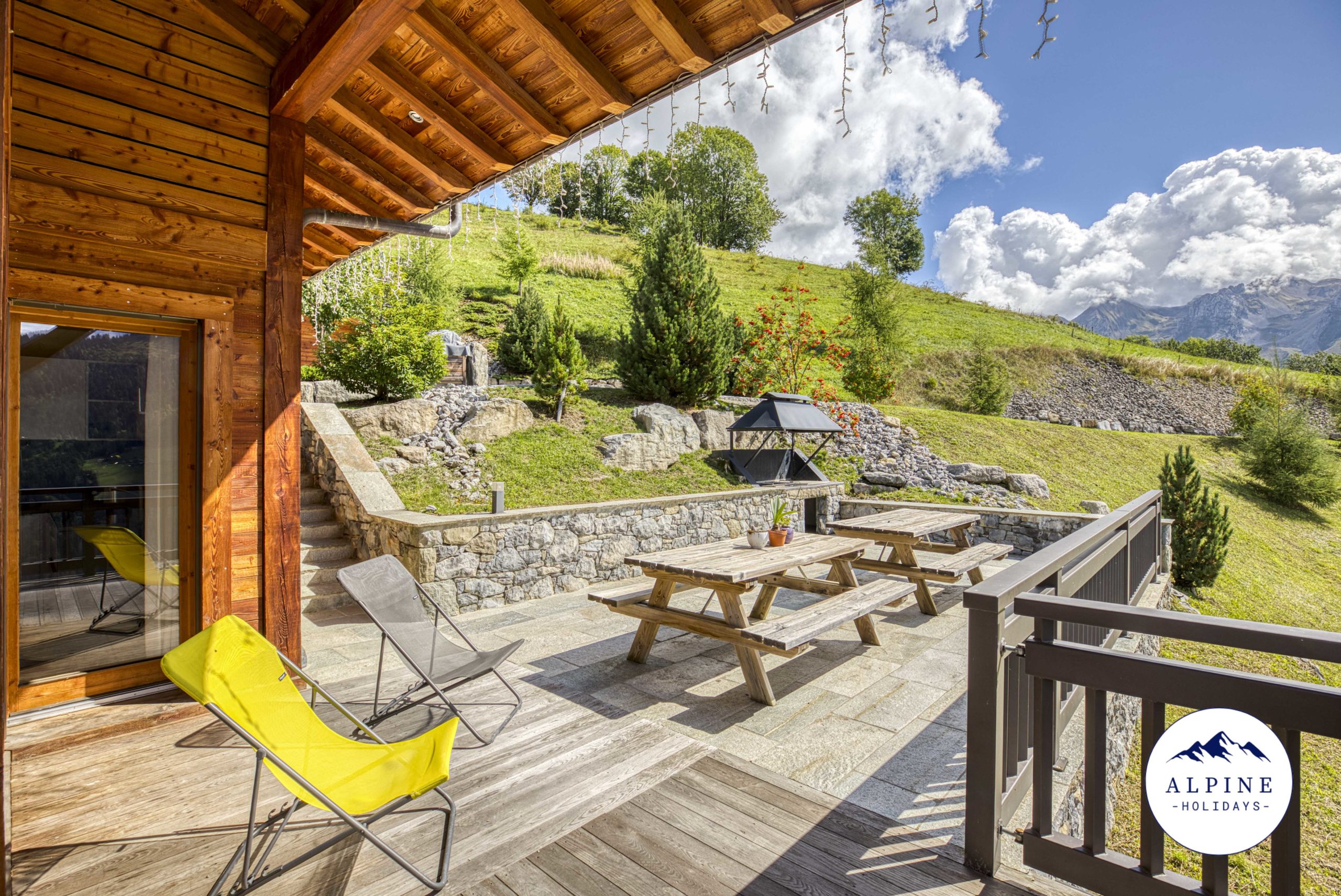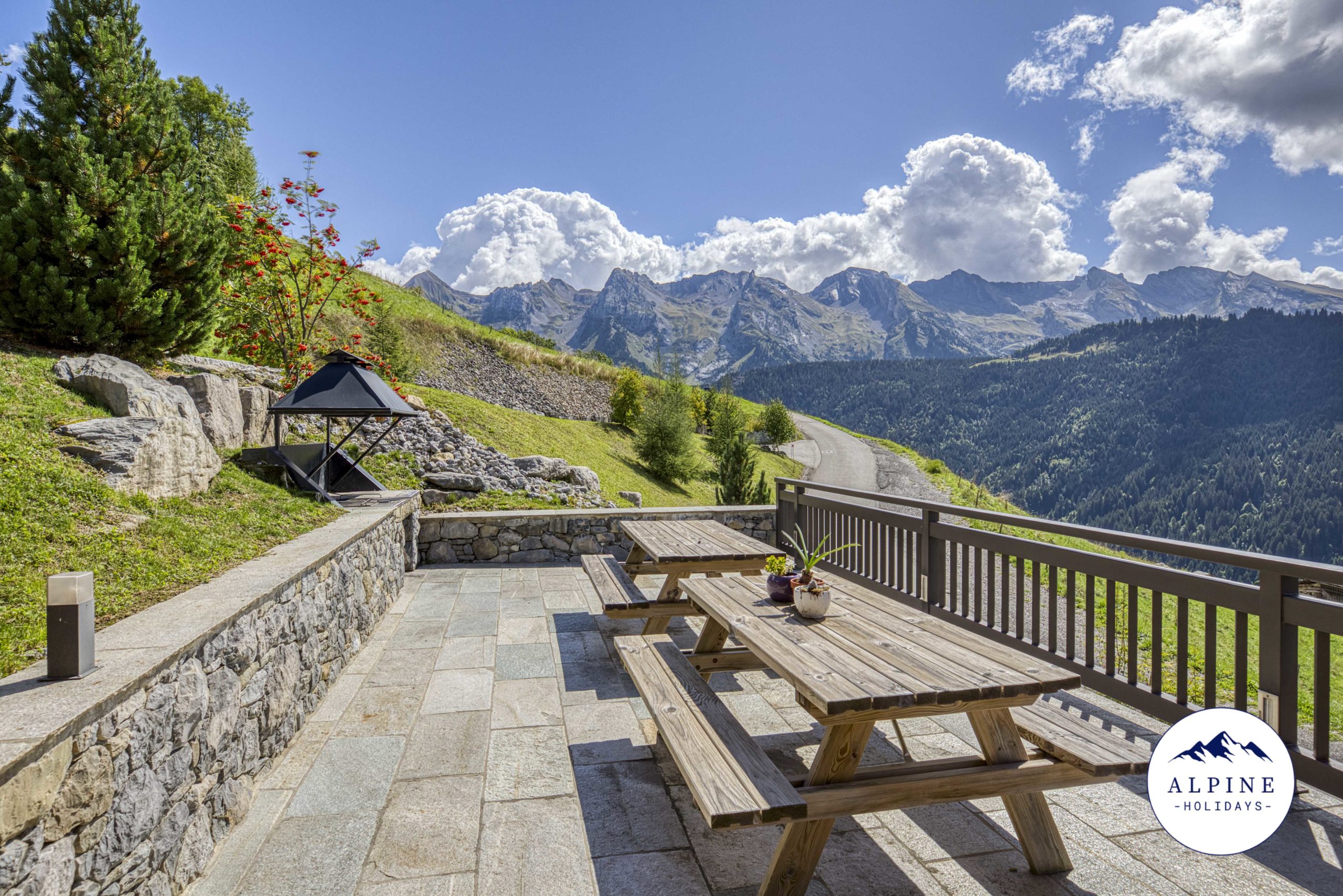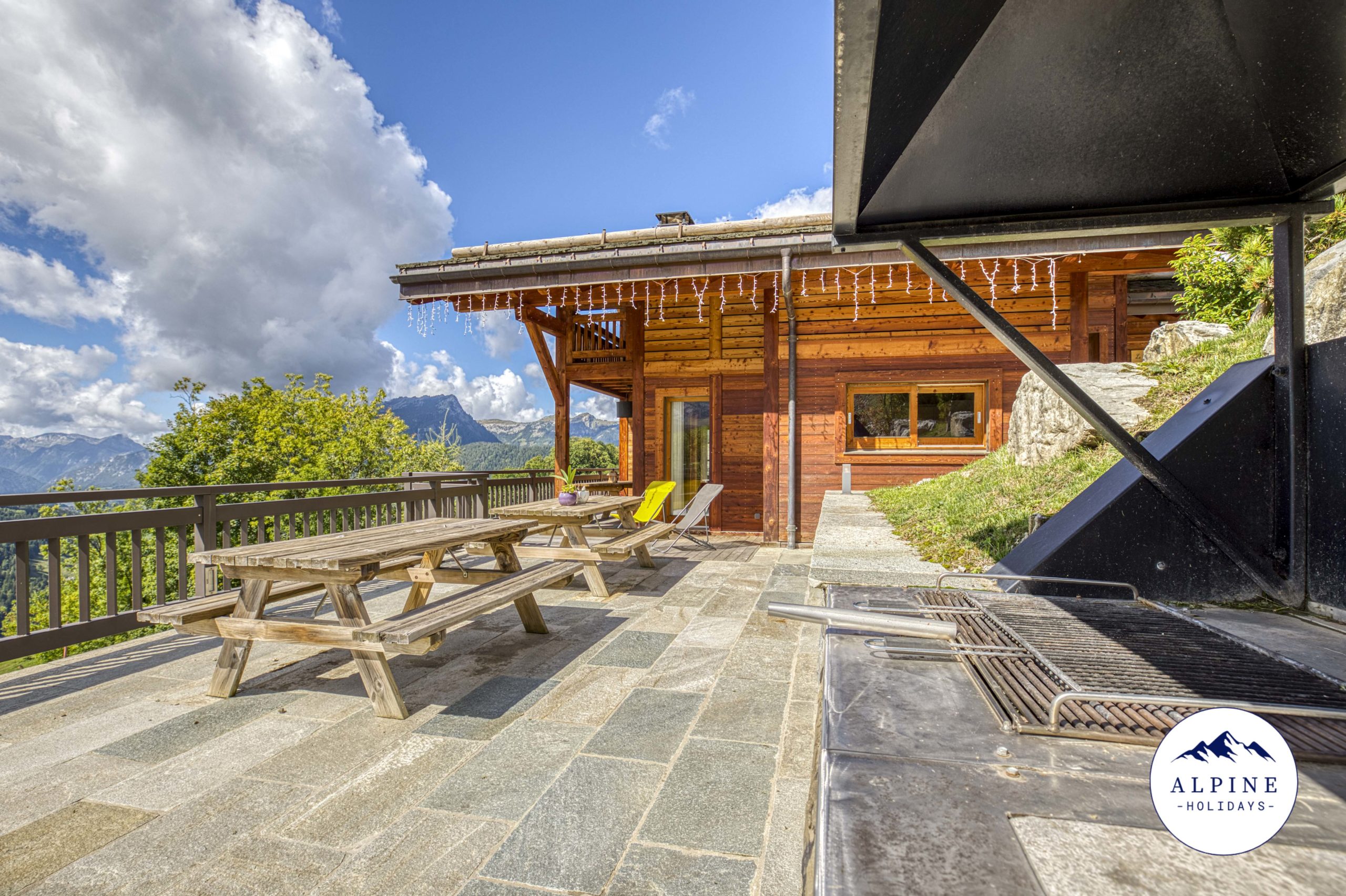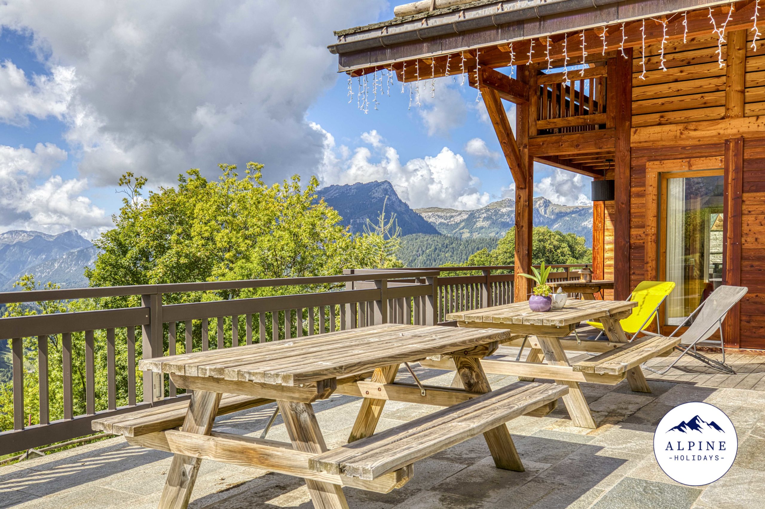🌞 A large terrace offering a panoramic view of the Aravis range