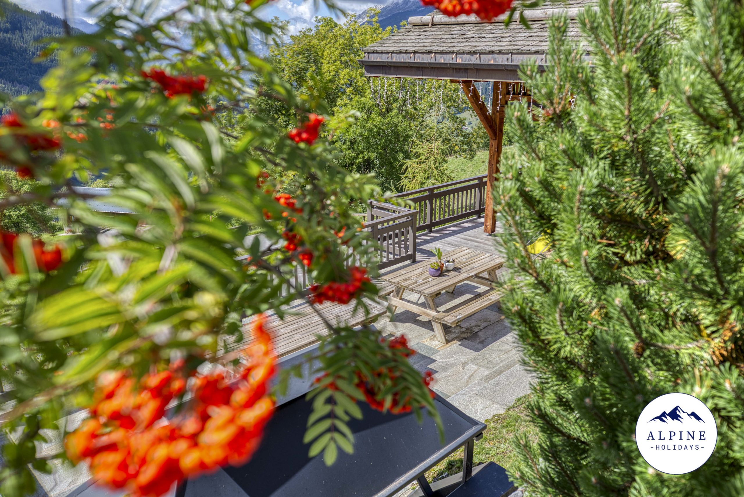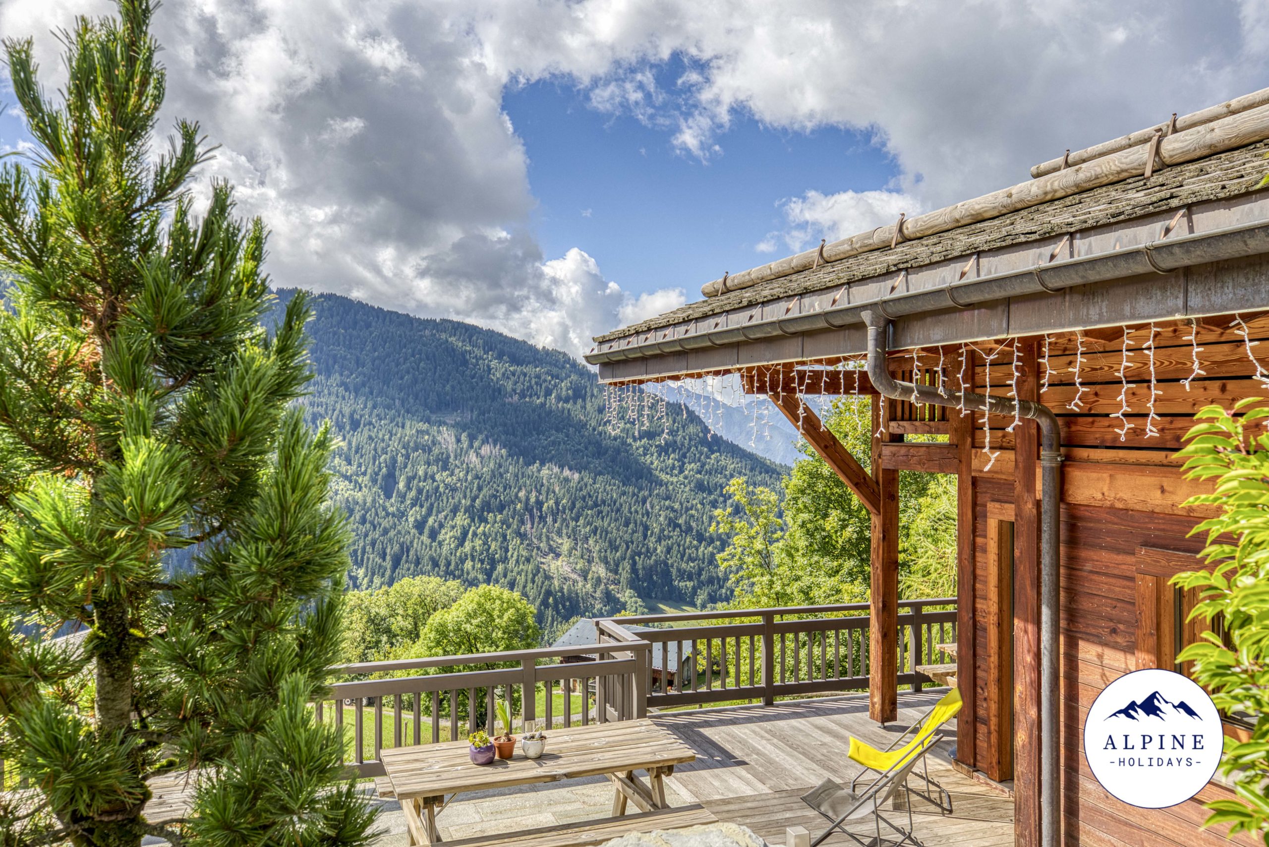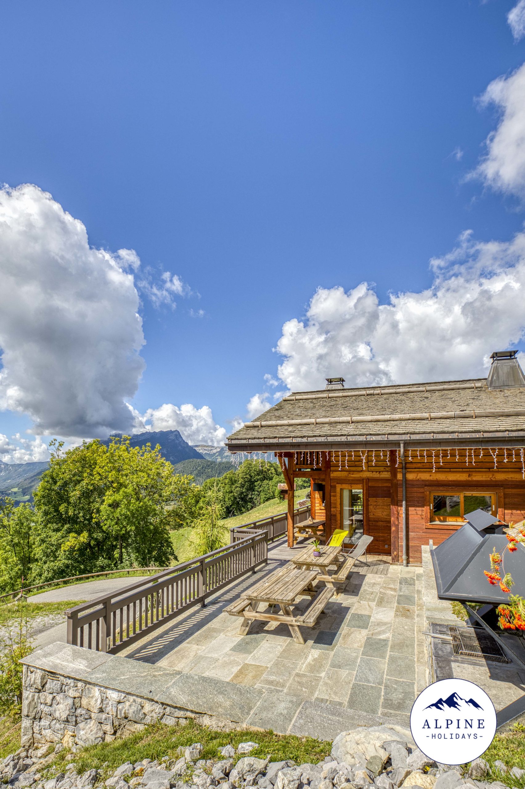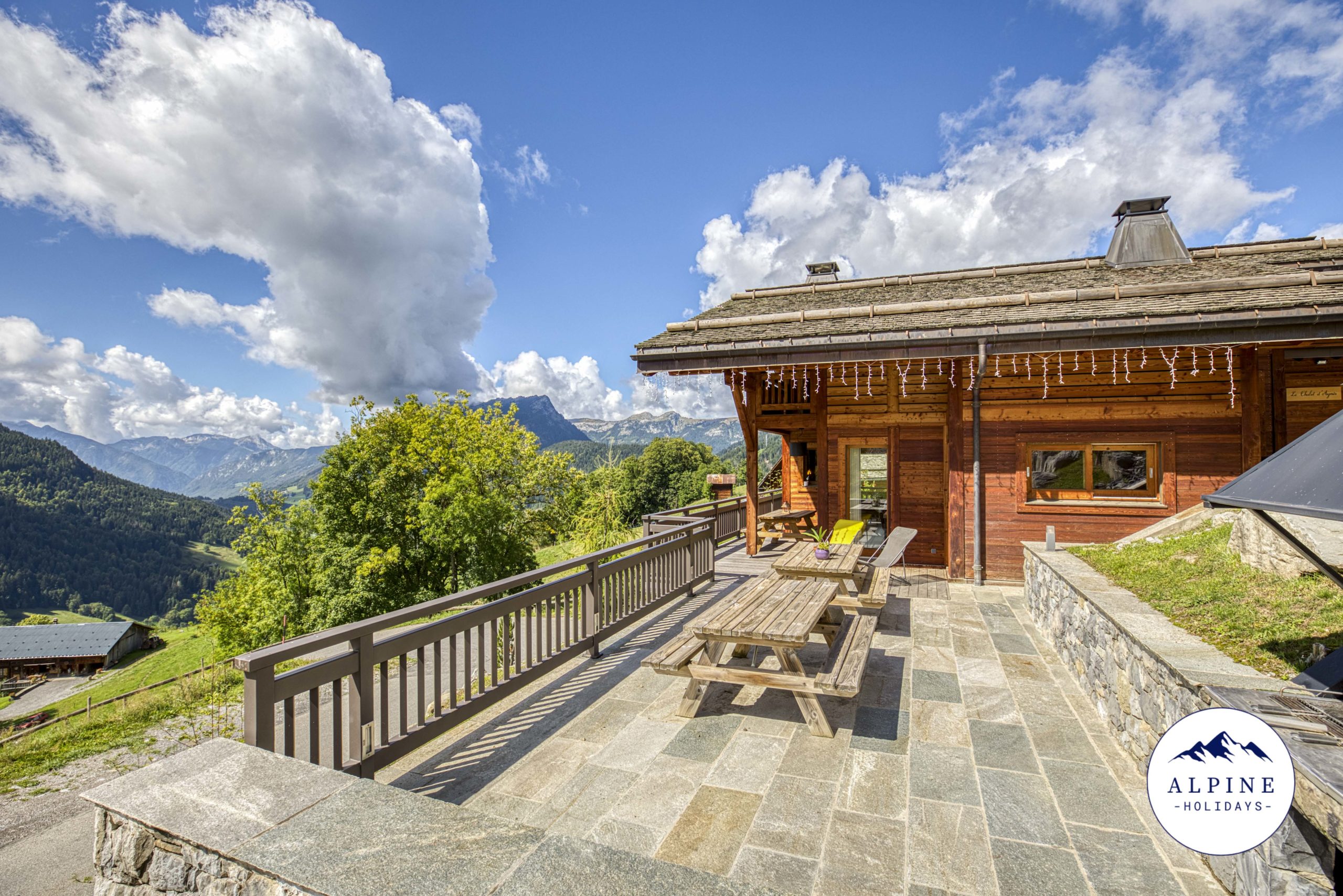 🌞 A large terrace offering a panoramic view of the Aravis range
